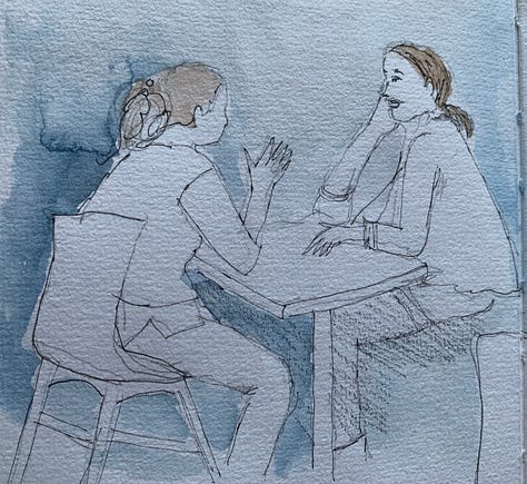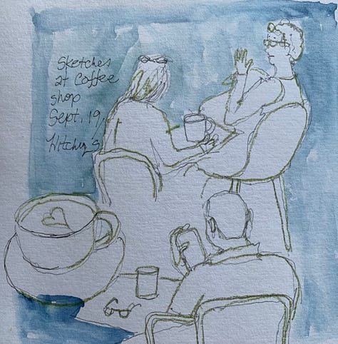 Sketchbook moments from life in cafes, in Hitchin UK and Tuscany Italy